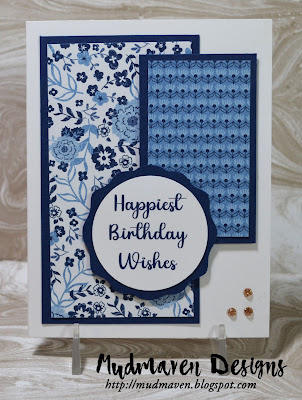 I got to use some of the new designer series paper called Countryside Inn. The card base is a white 100# card stock and there are layers using Night of Navy. Overall, the day was a complete success!